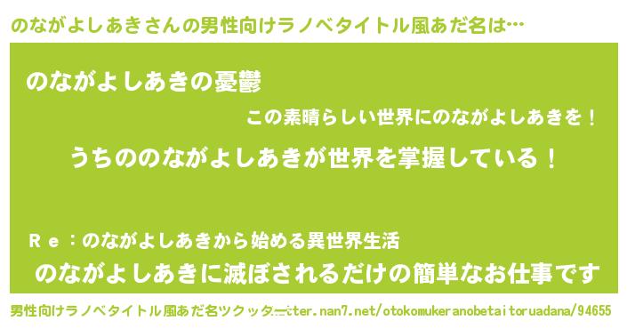 のながよしあきさんの男性向けラノベタイトル風あだ名をツクッター!