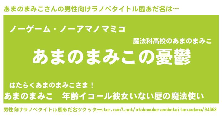 | 女子向けラノベタイトル風あだ名 | 『(仮)あまのまみこのやんごとなき事情』 |