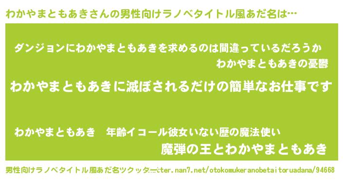 | 伝説のあだ名 | 『解き放たれた僧侶わかやまともあき』 |