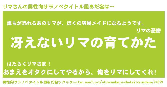 | 胡散臭い通販商品みたいなあだ名 | 『来世でも幸せになれる健康食品…その名も「リマ」』 |