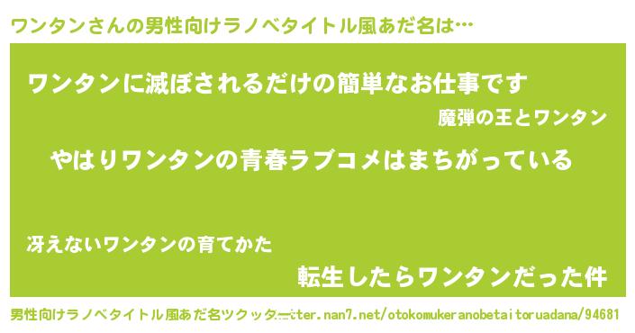 | 女子向けラノベタイトル風あだ名 | 『ワンタンの雑貨屋さん』 |