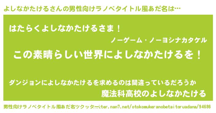 | 意味不明あだ名 | 『住所不定無職よしなかたける(95歳)』 |