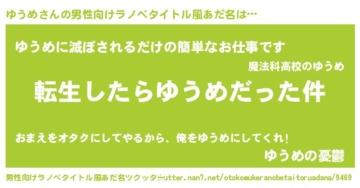 | ヘコむあだ名 | 『ゆうふぇ~』『ゆうお』『つくし』 |
