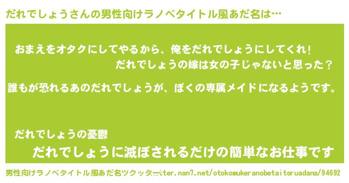 | 女子向けラノベタイトル風あだ名 | 『だれでしょうの契約王妃』 |