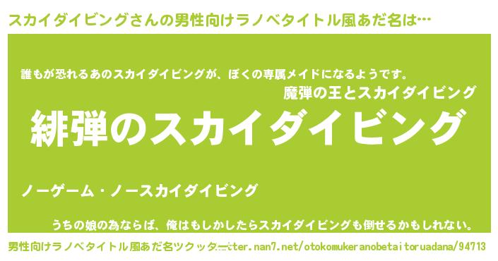 | 意味不明あだ名 | 『永久保存スカイダイビング』 |