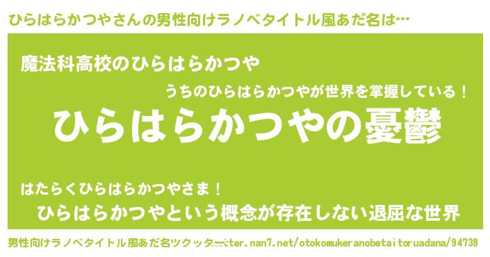 | ヒーロー風カッコイイあだ名 | 『スーパーヒラハラカツヤ』 |