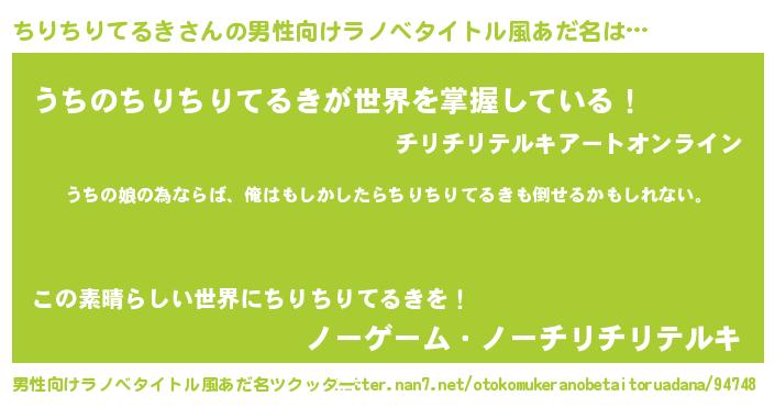| 女子向けラノベタイトル風あだ名 | 『ちりちりてるきの婚約者』 |