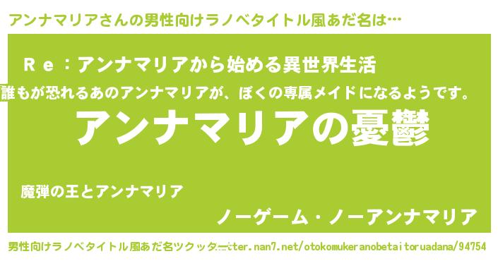 | 女子向けラノベタイトル風あだ名 | 『アンナマリア姫と円卓の騎士』 |