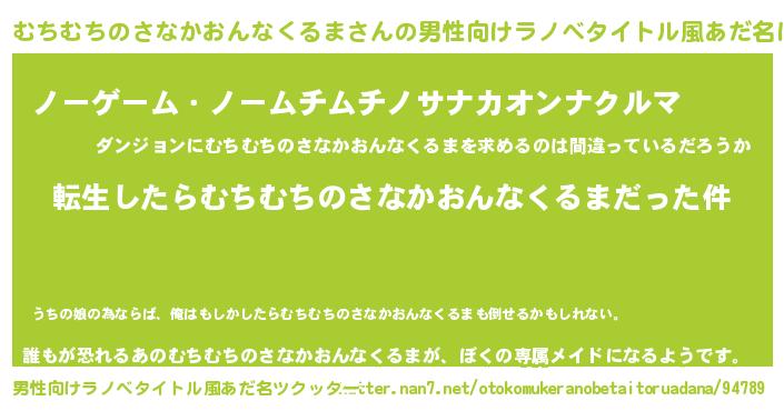 | ヘコむあだ名 | 『むちむちのさなかおんなくるま(小並感)』 |