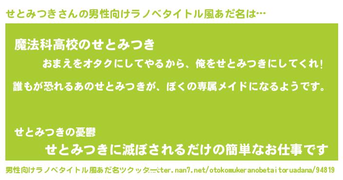 | ヒーロー風カッコイイあだ名 | 『ネオセトミツキ』『スーパーセトミツキ』 |