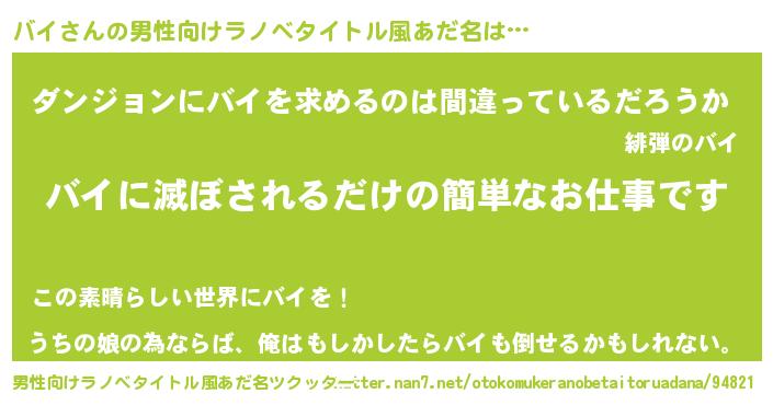 | 胡散臭い通販商品みたいなあだ名 | 『全米が絶賛したサプリメント…その名も「バイ」』 |
