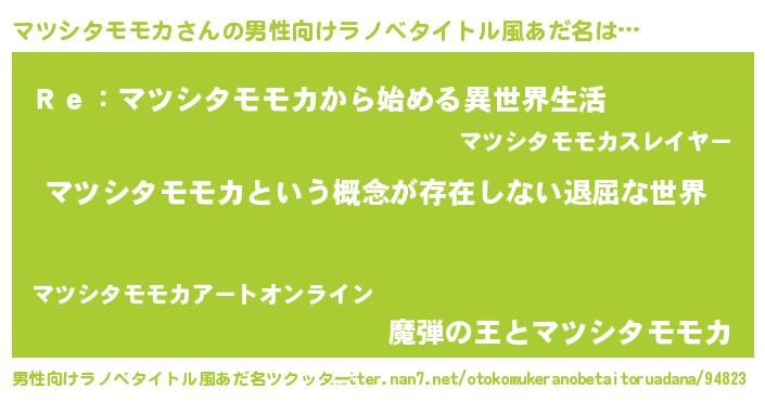 | 女子向けラノベタイトル風あだ名 | 『異世界で失敗しない100のマツシタモモカ』 |