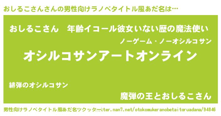 | ヒーロー風カッコイイあだ名 | 『スーパーオシルコサン』『仮面オシダー』 |
