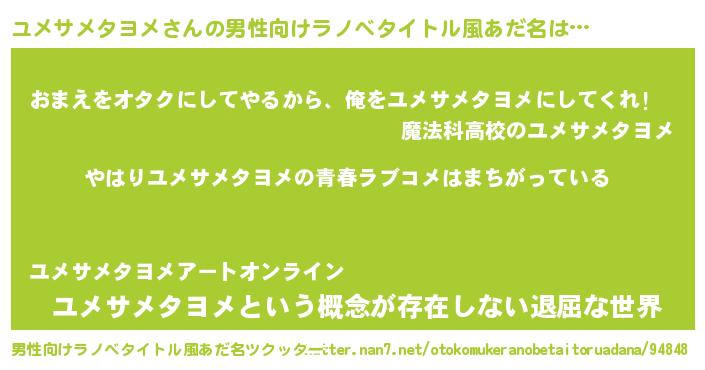 | 意味不明あだ名 | 『ユメサメタヨメフォーエバー』 |