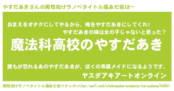肩書あだ名 | 『やすだあき閣下』『やすだあき助手』 |