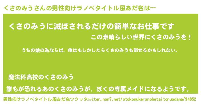 | 意味不明あだ名 | 『くさのみうフォーエバー』 |