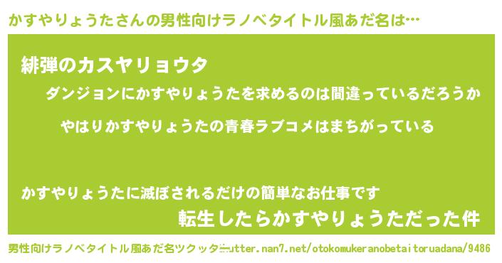 | 女子向けラノベタイトル風あだ名 | 『かすやりょうたの雑貨屋さん』 |