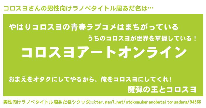 | 女子向けラノベタイトル風あだ名 | 『コロスヨ姫と円卓の騎士』 |