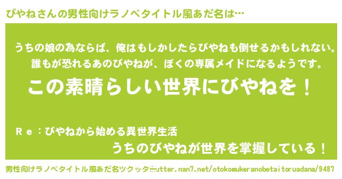 | ファンタジー風あだ名 | 『ヴァルビヤーナ』『エターナルビヤネー』 |