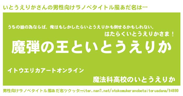 | ヒーロー風カッコイイあだ名 | 『仮面イトダー』『スーパーイトウエリカ』 |