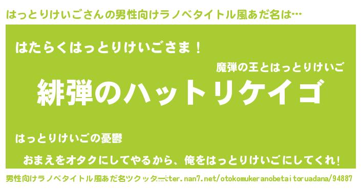 | 女子向けラノベタイトル風あだ名 | 『シンデレラはっとりけいご家の靴箱館』 |