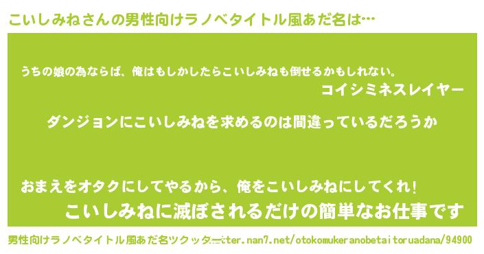 | 女子向けラノベタイトル風あだ名 | 『こいしみねは平凡を望む』 |