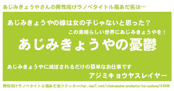 | 肩書あだ名 | 『あじみきょうや御曹司』 |