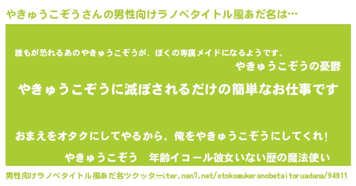 | 胡散臭い通販商品みたいなあだ名 | 『来世でも幸せになれる水素水…その名も「やきゅうこぞう」』 |