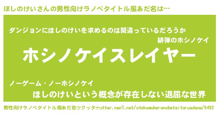 | ヒーロー風カッコイイあだ名 | 『暗黒騎士ホシ』『ネオホシノケイ』 |