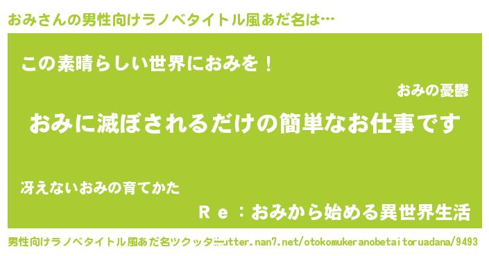 | 胡散臭い通販商品みたいなあだ名 | 『世界中を虜にした100年もののヴィンテージワイン…その名も「おみ」』 |