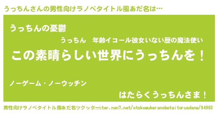 | 意味不明あだ名 | 『住所不定無職うっちん(40歳)』 |