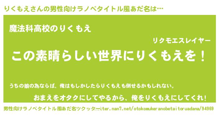 | 意味不明あだ名 | 『住所不定無職りくもえ(39歳)』 |