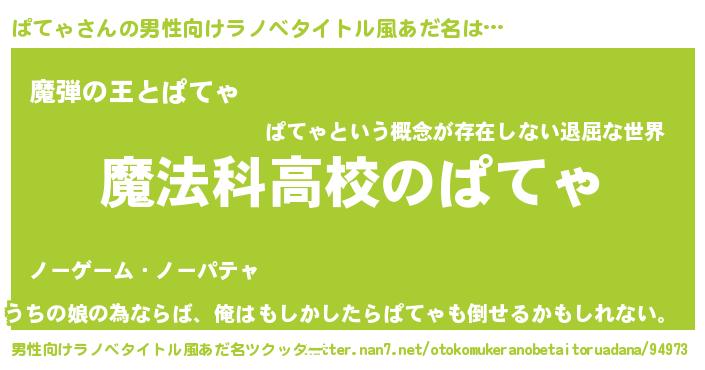 | 女子向けラノベタイトル風あだ名 | 『ぱてゃアンティーク』『ぱてゃの婚約者』 |