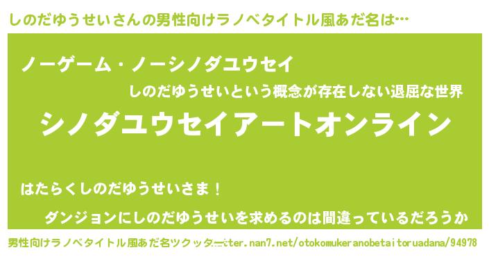 しのだゆうせいさんの男性向けラノベタイトル風あだ名をツクッター!