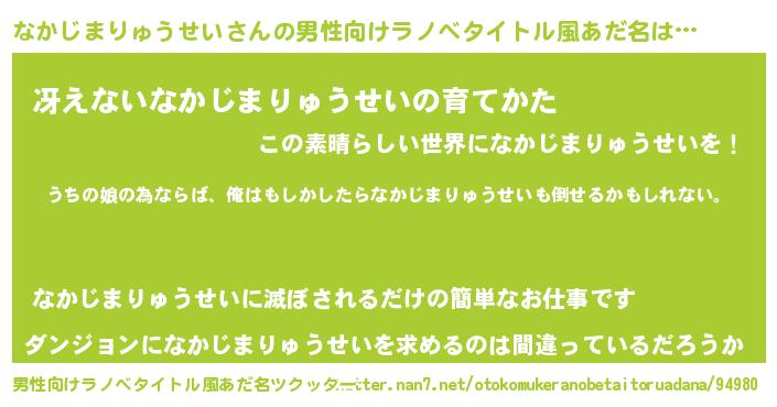 | ファンタジー風あだ名 | 『エターナルナカジマリュウセイー』 |