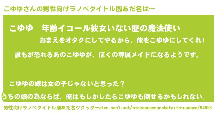 | 女子向けラノベタイトル風あだ名 | 『異世界でカフェこゆゆを開店しました。』 |