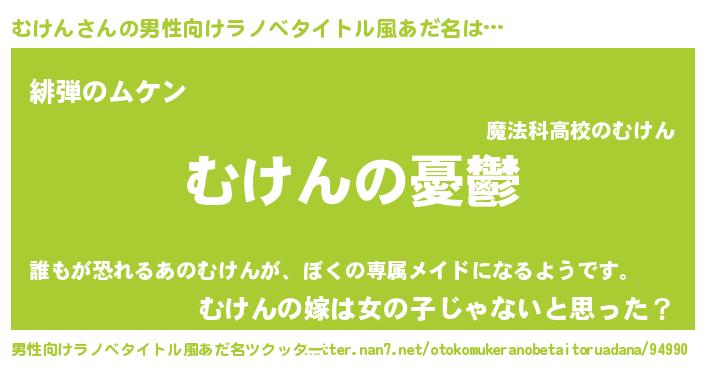 | 女子向けラノベタイトル風あだ名 | 『むけん姫と円卓の騎士』 |