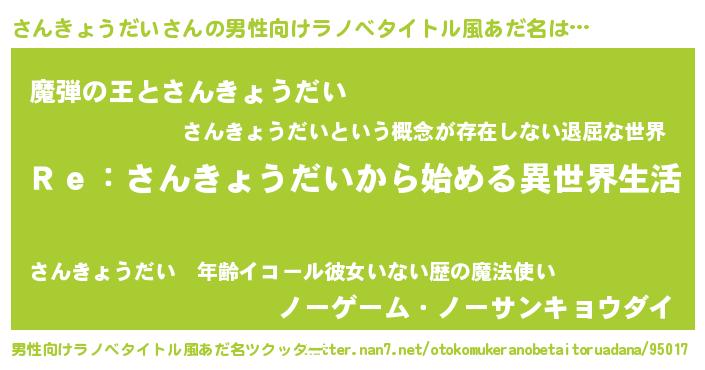 | ヒーロー風カッコイイあだ名 | 『最強戦士サンキョウダイ』 |