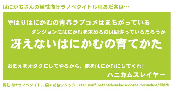 | ヘコむあだ名 | 『なまこ酢』『はにっぺ』『はににー』 |