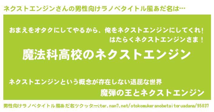 | 意味不明あだ名 | 『自称ネクストエンジン』 |