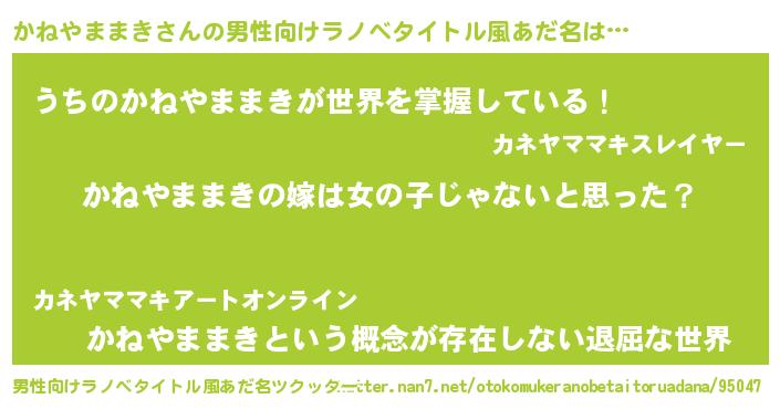 | 女子向けラノベタイトル風あだ名 | 『かねやままき様がみてる』 |