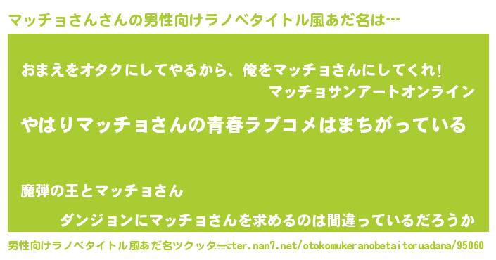 | 意味不明あだ名 | 『マッチョさんフォーエバー』 |