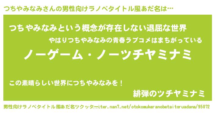 | 女子向けラノベタイトル風あだ名 | 『死神つちやみなみの再婚』 |