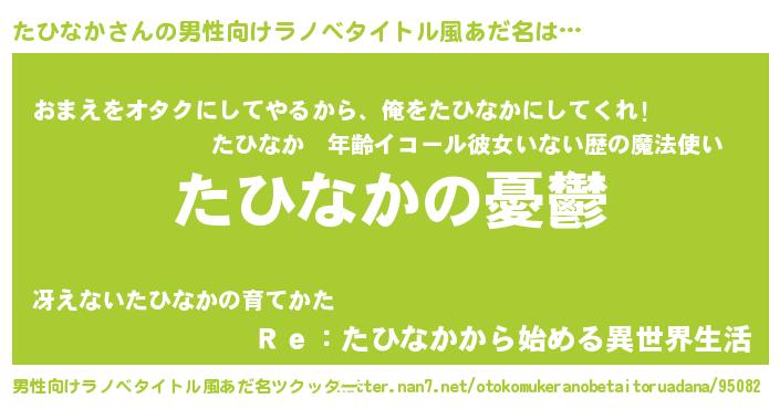 | 女子向けラノベタイトル風あだ名 | 『たひなか姫と円卓の騎士』 |