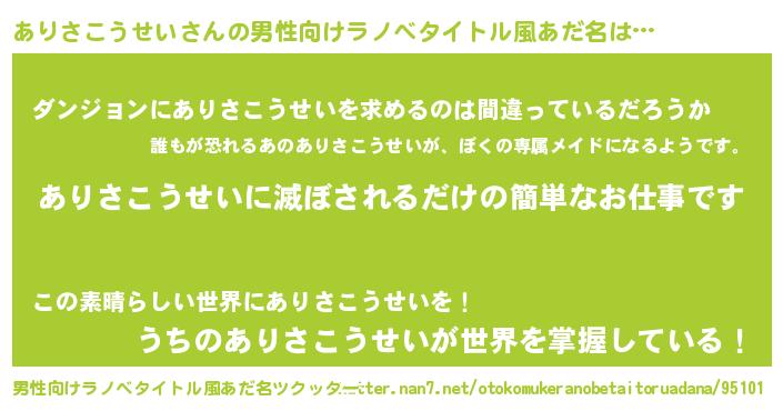 | 伝説のあだ名 | 『覚醒した遊び人ありさこうせい』 |