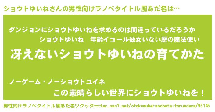 | 伝説のあだ名 | 『解き放たれた僧侶ショウトゆいね』 |