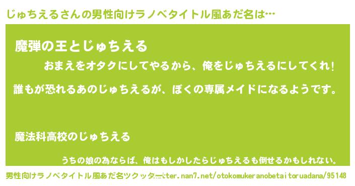 | 胡散臭い通販商品みたいなあだ名 | 『来世でも幸せになれる水素水…その名も「じゅちえる」』 |