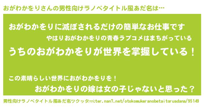 | 胡散臭い通販商品みたいなあだ名 | 『全米が絶賛したサプリメント…その名も「おがわかをり」』 |