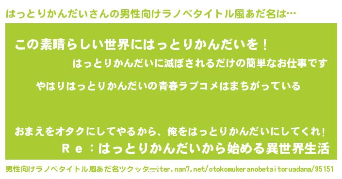 | 意味不明あだ名 | 『はっとりかんだいフォーエバー』 |
