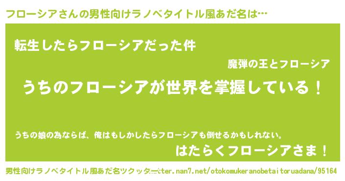 | 女子向けラノベタイトル風あだ名 | 『男装フローシアの憂鬱な任務』 |